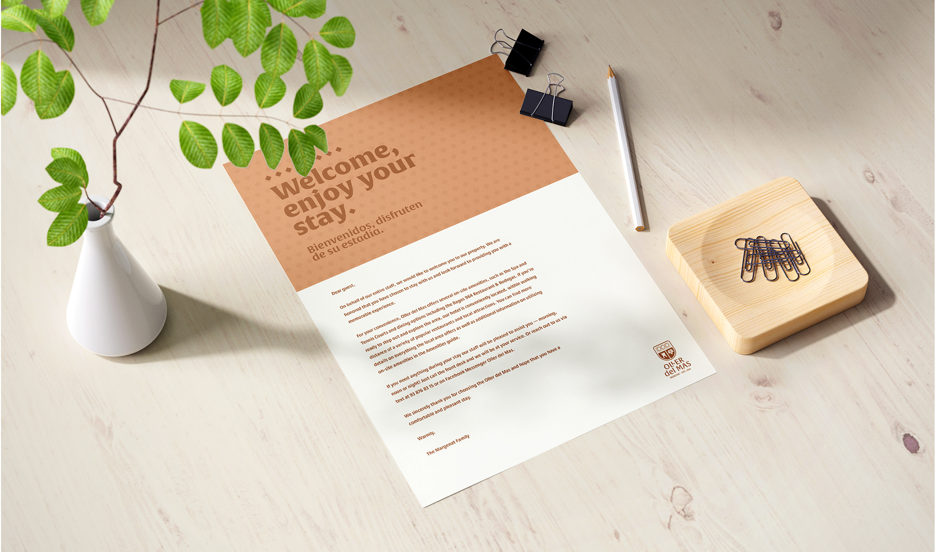 As part of all the amenities of Oller del Mas, they wanted give their restaurant its own personality that could be easily adapted to the other services it provides. This brand adaptation opened the door to create a new image and graphic elements to build the restaurant personality, but still looking like it's related to the main brand of